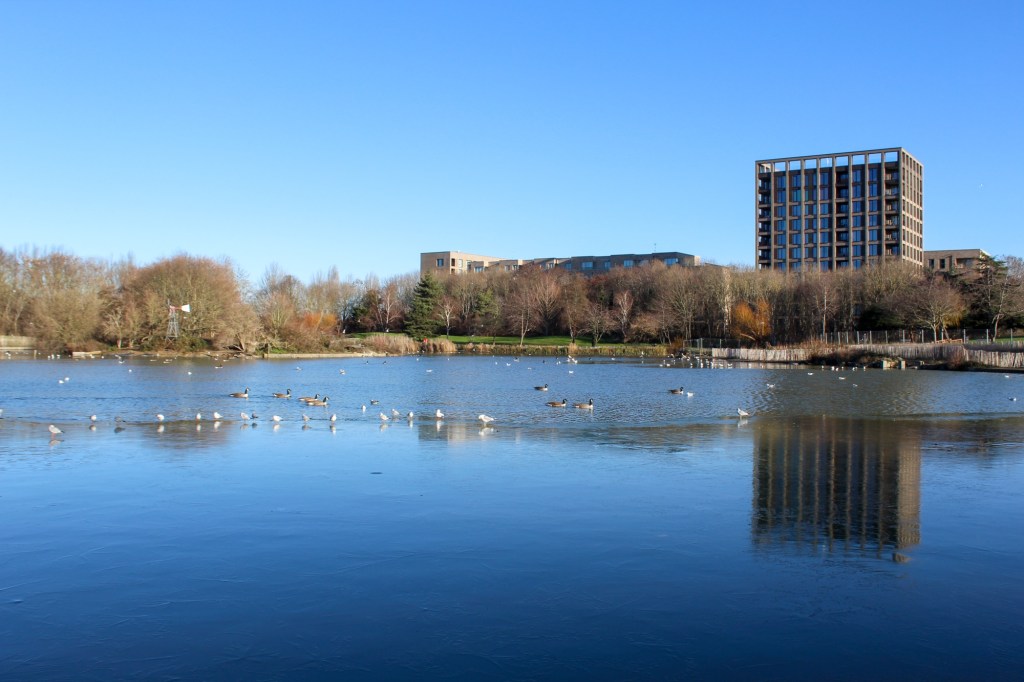There was something oddly beautiful in the contrast: swans moving easily through the water in the background, while a seagull in the foreground attempted to strut confidently across the frozen surface. Its feet splayed without warning, progress interrupted by the ground refusing to behave as expected.